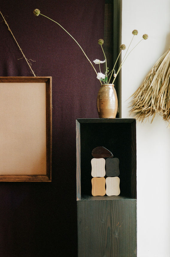 Alongside a second collection, the studio presented a large hand printed textile work. The piece, made from naturally dyed cotton, explored the theme 'mother.’